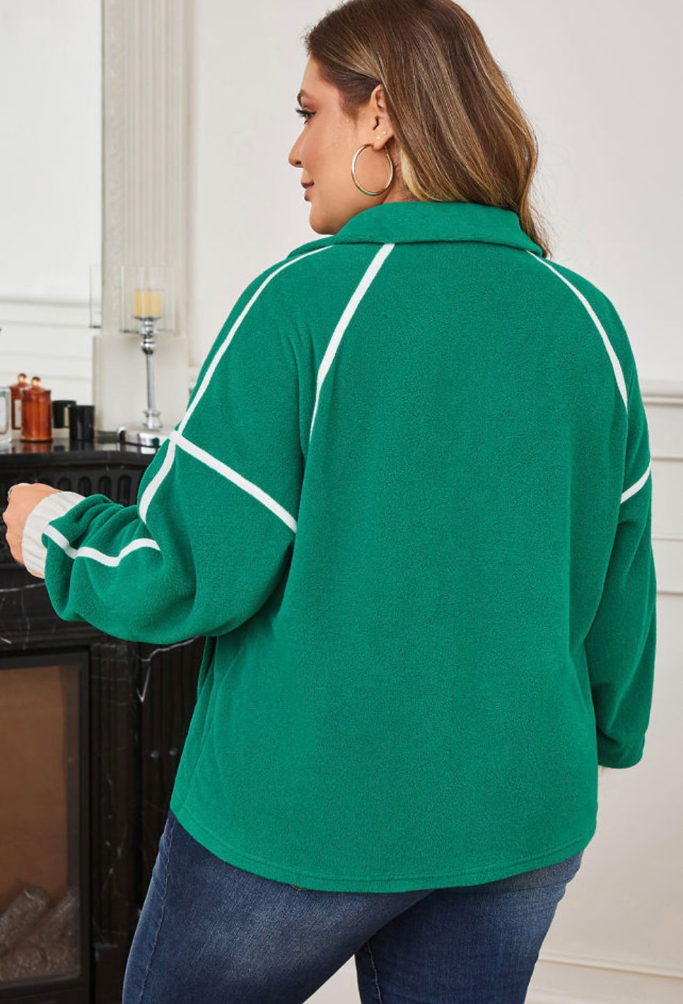 A+O Curvy Girl Dark Green 1/2 Zip Fleece Sweatshirt